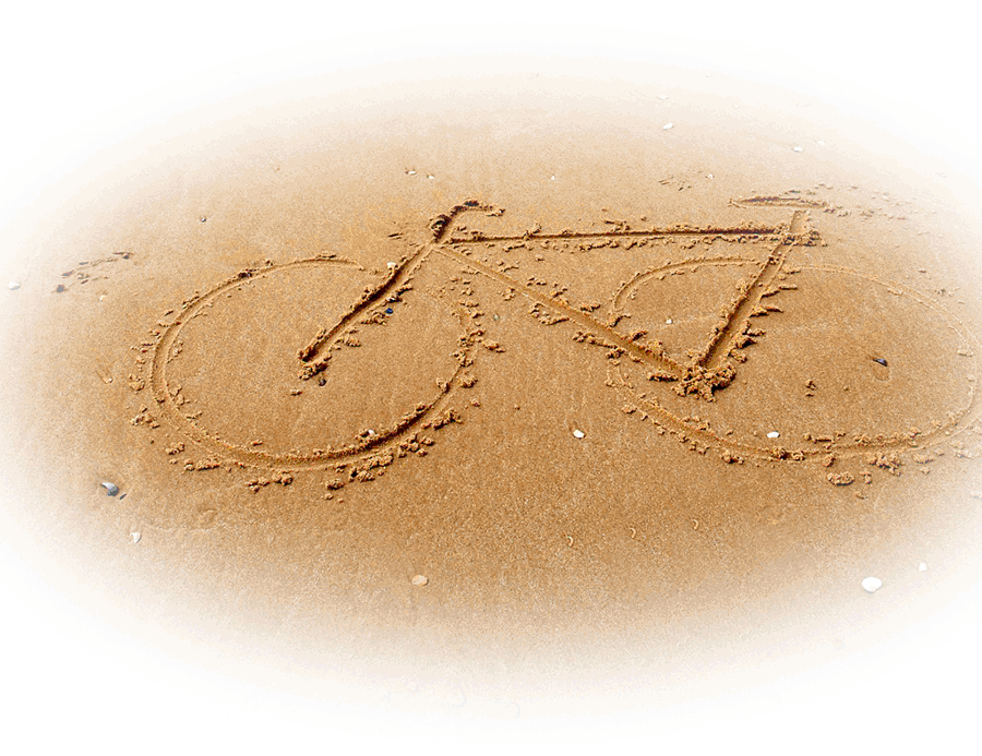 Dopo un’altra salita e una discesa, arriviamo in un posteggio. Qui si può valicare la duna e raggiungere la spiaggia. Il Mare del Nord oggi ha un colore scuro che la bianca cresta delle onde rende meno tetro e inquietante. In questo momento c’è bassa marea. La spiaggia, già ampia è ancora più vasta. La percorriamo fino a toccare l’acqua. Sulla spiaggia umida Giuseppe disegna una bicicletta. Mentre torniamo verso le nostre due ruote, osserviamo la pulizia della spiaggia. Nonostante la presenza di un certo numero di bagnanti, non ci sono rifiuti sparsi. La civiltà di un popolo si vede anche dal rispetto che esso ha per l’ambiente.